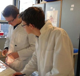 Door koolstofelektroden in de stof te houden konden we zien of de stof stroom geleidde. We wisten dat doordat dan het lampje dat we hadden aangesloten op de stroomkring ging branden of niet.